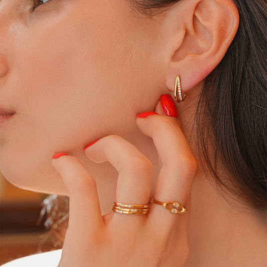 CAOCA Pırlanta Taşlı Yarım Halka Küpe