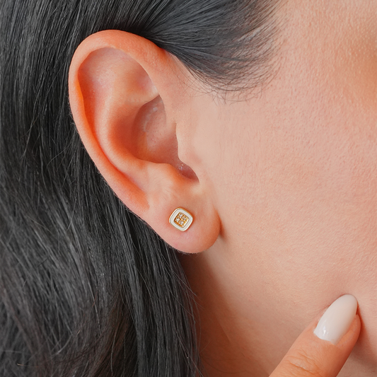 CAOCA Mineli ve Pırlanta Taşlı Kare Küpe
