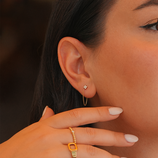 CAOCA Mineli Altın ve Pırlanta Harf Küpe