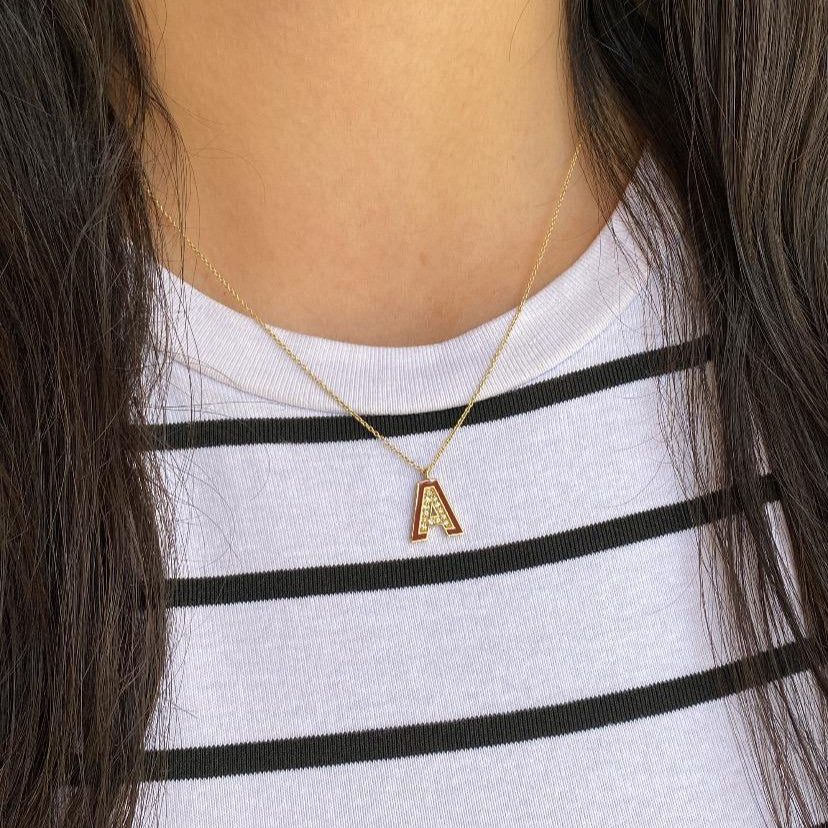 CAOCA Mineli Harf Altın ve Pırlanta Büyük Kolye